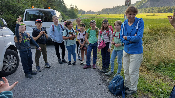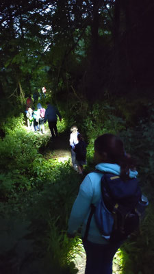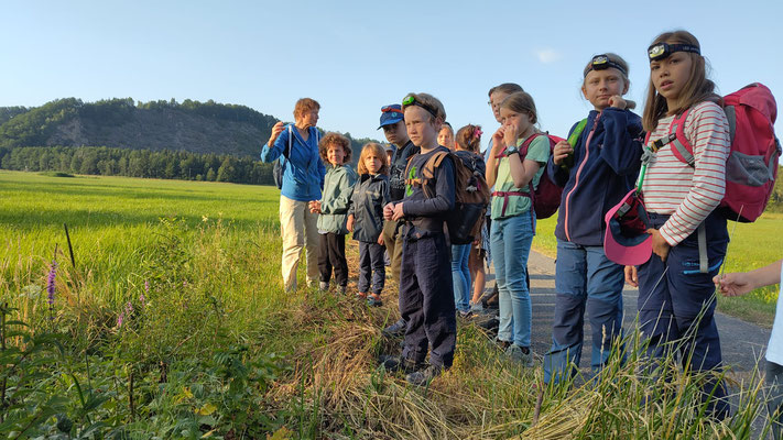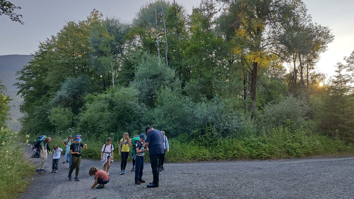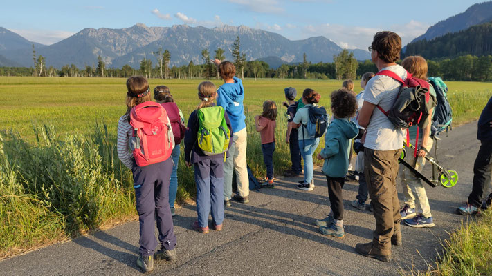 Auf eine Exkursion der besonderen Art begaben sich die Kinder der Umwelt-AG gemeinsam mit den Schülerinnen und Schülern, die sich im Rahmen der LBV-Sammelwoche engagiert hatten. Beide Gruppen waren eingeladen, das geheime Leben der Fledermäuse im Murnauer Moos zu erforschen und zu erleben. Da die heimlichen Jäger der Nacht natürlich auch nur nachts zu beobachten sind, machte sich die Gruppe unter Führung von Brigitte Wegmann vom LBV auf den Weg zum Hartsteinwerk. Schon während der Wanderung erfuhren die Kinder viel Spannendes und Interessantes über das Murnauer Moos, die Pflanzen und Tiere, aber auch über die Köchel und den Abbaubetrieb am ehemaligen Steinbruch. Unterwegs konnnte die Gruppe dann bereits einige Männchen in ihren engen Unterkünften an Kratzgeräuschen lokalisieren. Nach einer kleinen Brotzeitpause und einer gemeinsamen Spielrunde, setzten wir dann unsere Tour auf geheimen Schleichpfanden fort und näherten uns vorsichtig der Wochenstube, einer Unterkunft für Fledermausmütter mit ihren Jungen. Wie viele Weibchen werden wohl in dieser Nacht auf die Jagd fliegen? Das wollten wir herausfinden und waren am Ende wirklich sehr beeindruckt. 240 Exemplare hatten wir beim Ausfliegen beobachten können! Ein beeindruckendes Erlebnis! Im Dunkeln ging es dann zurück. Vorbei an Glühwürmchen und begleitet von Grillenzirpen klang der spannende Ausflug leise und glücklich aus.