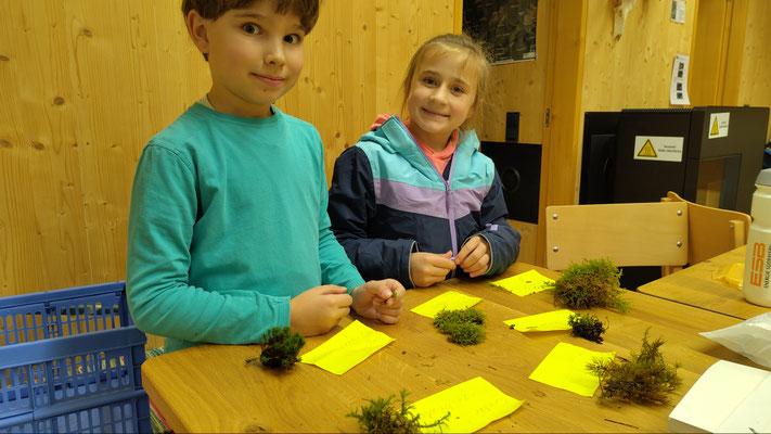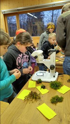 Auf jede Frage hatte Benedikt eine Antwort und vermittelte uns Interessantes und Wissenswertes über einen kleinen Bruchteil der 1000 heimischen Moosarten. Vom Lebermoos über das Schlafmoos, den Großen Runzelbruder, das Rosenmoos bis zum Frauenhaarmoos - jede Moosart ist auf seine Weise auf ganz besondere Weise an ihren Lebensraum angepasst. Eine Wunderwelt tat sich vor unseren Augen auf, die wir so noch nie wahrgenommen hatten. In der Umweltstation Murnauer Moos konnten wir dann beim Blick durchs Mikroskop noch tiefer eintauchen in die verborgene Welt einer uralten und faszinierenden Lebensform unserer Erde. Unser allerherzlichster Dank gilt Benedikt Faas für die Zeit, die er uns geschenkt hat. Wir freuen uns schon auf unsere nächste Exkursion!