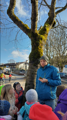 Zum Abschluss erzählte uns Frau Klöck im Schulgarten, wie die Sorte "Jakob-Fischer" entstanden ist.