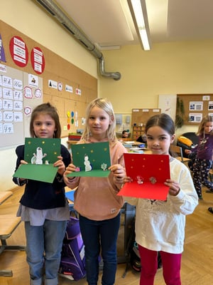 Eifrig und voller Begeisterung schrieben und malten die Klasse 3c und die Ethikgruppe weihnachtliche Karten und Umschläge für die Bewohner des Seniorenheims Garhöll. Zusätzlich zur himmlischen Post werden die Bewohner mit selbstgebastelten Sternen beschenkt.
