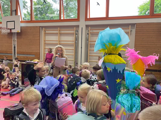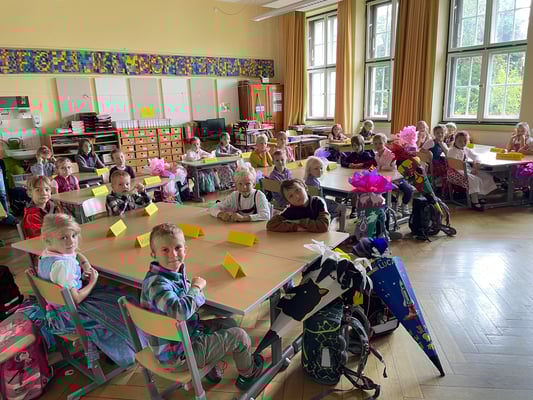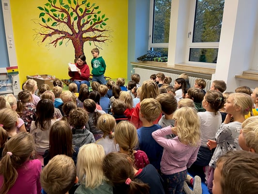 Doch nicht nur die Erstklasskinder weckten das Schulhaus nach sechs Wochen Sommerferien wieder auf. Auch die Schülerinnen und Schüler der zweiten, dritten und vierten Klassen kehrten voll Freude, Neugier und Erzählungsdrang aus den Ferien zurück. Dabei lernten sie unsere neue Lehrkräfte sowie neue Klassenkameraden und -kameradinnen kennen und starteten bereits mit der ein oder anderen Aufgabe langsam in das neue Schuljahr.