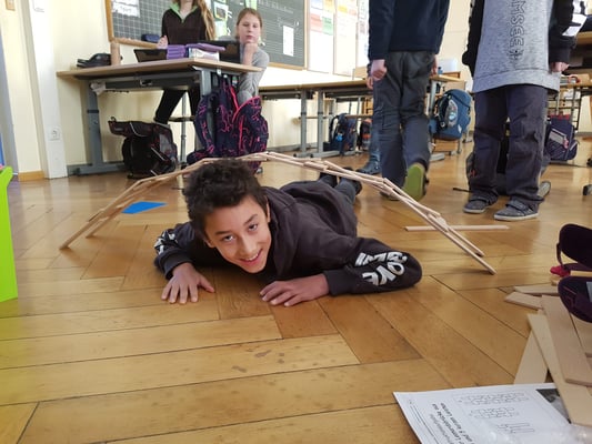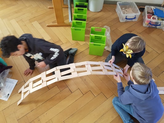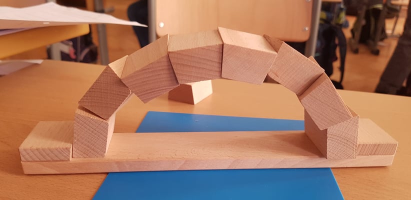 Im Zuge dessen haben wir uns auch mit den verschieden Bauarten beschäftigt und das nicht nur am Papier: Neben kleinen Bogenbrücken aus Holzbausteinen und einer 7m (!) langen Balkenbrücke aus