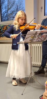 Zu einer kleinen Weihnachtsfeier trafen sich Eltern und Kinder der Klasse 2b. Da staunten die Eltern nicht schlecht, was die Schülerinnen und Schüler auf die Beine stellten. Da wurde gesungen, sogar im Kanon, Weihnachtswitze wurden vorgespielt und eine Weihnachtsakrobatik vorgetanzt.
