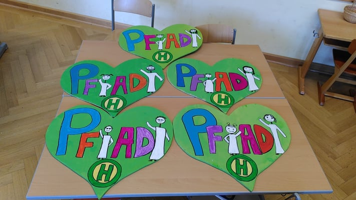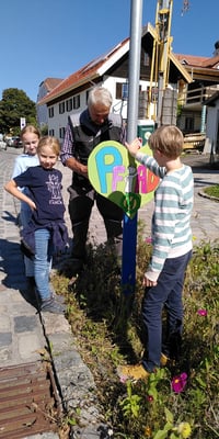 Das war spontan! Nachdem in Gesprächen mit Polizei, Ordnungsamt und Verkehrswacht vor einer Woche die Idee entstand, "Pfiadi-Zonen" für die Seidlschule einzurichten, machten sich die Kinder der Umwelt-AG in einer Hau-Ruck-Aktion an die Arbeit und fertigte kreativ und engagiert Schilder, die einfach Lust machen bei ihnen Halt zu machen.