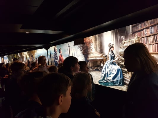 Im Schlosshof wurde die Klasse in zwei Gruppen geteilt. Während die eine Hälfte der Kinder mit der Führung durch das Museum begann, startete die andere Hälfte mit dem pädagogischen Programm.
