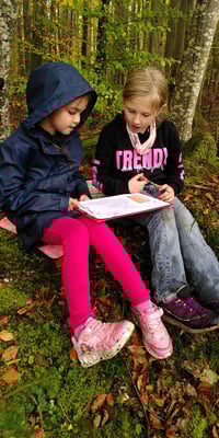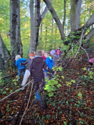 Endlich konnte die Draußenschule der Klasse 2b beginnen. Ein Waldstück war gefunden.