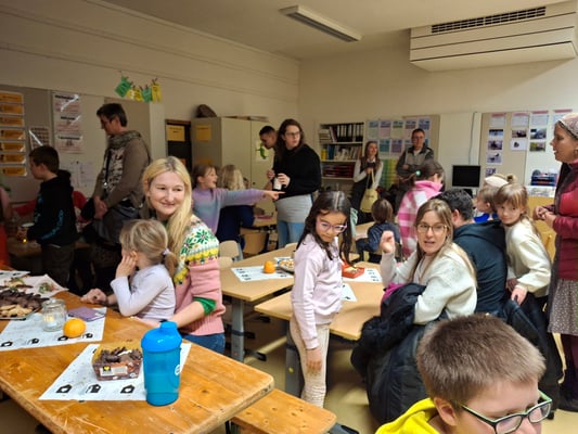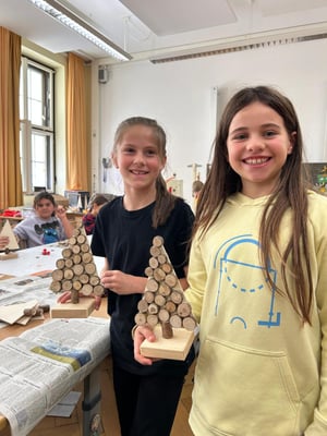 Am 12.12. fand der diesjährige Advent-Basteltag statt, bei dem die Kinder gemeinsam mit Lehrenden und Eltern kreative Weihnachtsdekorationen gestalteten. In den Klassenzimmern wurde eifrig geschnitten, geklebt und verziert: Sterne aus Holz, Überraschungsboxen, Wichtel, Weihnachtskarten und vieles mehr. Die Kinder hatten viel Freude daran, ihrer Fantasie freien Lauf zu lassen. Am Ende des Tages konnten alle stolz ihre Kunstwerke mit nach Hause nehmen und damit ihre Familien auf das Weihnachtsfest einstimmen.