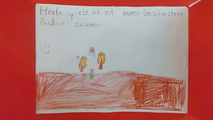"Heute erzähle ich jemandem einen Witz!" "Heute spiele ich mit deinen Geschwistern friedlich zusammen!" "Heute bedanke ich mich bei jemandem!" "Heute grüße ich besonders freundlich!"