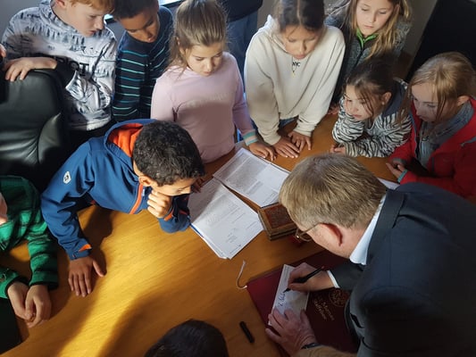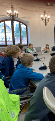 “Ich fand es cool, dass wir im Sitzungssaal saßen und dort in die Mikrofone sprechen durften.” (Isabella, 4b)