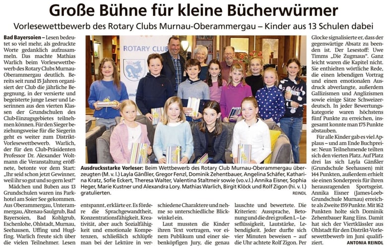 Dank finanzieller Unterstützung der VR Bank Werdenfels und des Lions Clubs, die jeweils eine Klasse sponserten, konnte dieses Projekt in zwei Klassen durchgeführt werden. Herzlichen Dank dafür!!!