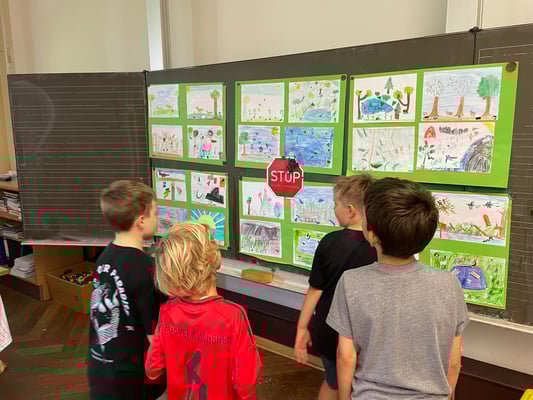 Unsere Klassensprecher durften die Schilder beim Staffelsee-Gymnasium abholen, wo sie zuvor ausgestellt waren. Gemeinsam brachten die Kinder sie in unser Schulhaus und verteilten sie an gut sichtbaren Orten: im Eingangsbereich sowie auf den Fluren.