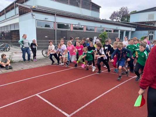 Ein besonderer Dank gilt dem Elternbeirat, der mit einer tollen Obst- und Getränkeausgabe für frische Energie und gute Stimmung gesorgt hat. Ebenso bedanken wir uns herzlich bei den zahlreichen Eltern, die tatkräftig mitgeholfen haben – insbesondere beim Messen der Weiten und Zeiten. Ohne Ihre Unterstützung wäre ein solch reibungsloser Ablauf nicht möglich gewesen.