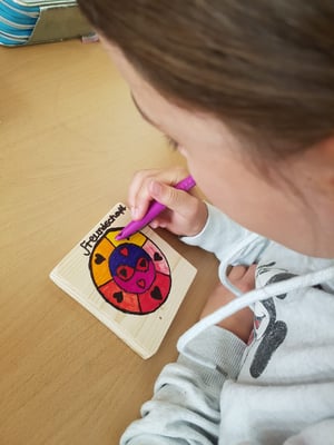 So entsteht unser eigenes Werte-Verkehrsschild. Den Entwurf übertragen wir sorgfältig auf ein geschliffenes Holzbrett. Im Anschluss überlegen wir uns nun für unser Mega Spiel zwei Situationen, in