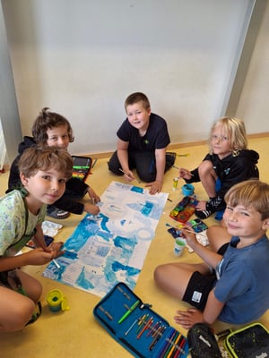 Wenn wir Frieden haben wollen, müssen wir bei uns selbst beginnen. Deshalb ist es zentral, dass wir in der Klasse friedlich zusammenleben. Muss immer eine Person nachgeben, damit es friedlich bleibt? Im Buch "Die Brücke" erfuhren wir, dass man gemeinsam kluge Möglichkeiten entdecken kann wie jeder zu seinem Recht kommt und das macht auch noch Spaß. Wie kommen also der Bär und der Mann im Buch gleichzeitig über die schmale Brücke? Die Lösung liegt im Annähern und Verstehen, dann kann man umeinander herumtanzen. Das Thema des Buches wurde im Rahmen des Waldtages gleich am Fluss ausprobiert. Im Klassenzimmer gelingt es es uns mit Hilfe der neu gebauten Friedenstreppe nun zunehmend besser, die Perspektive zu wechseln und uns zu verstehen. Unsere Erfahrungen haben wir in einem Film zusammengefasst. Haben wir einen Streit gelöst und Frieden gefunden, tanzen wir um einander herum.