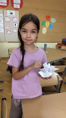 Gegen die vielen Kriege in der Welt können wir nichts unternehmen, aber wir können ein Zeichen für Frieden setzen. Gemeinsam mit den Klassen 4c und 3b begannen wir Tauben zu falten. Denn nach einem alten japanischen Brauch, wird dem ein Wunsch erfüllt, der 1000 Kraniche faltet. Wir wandelten die Geschichte ein bisschen ab und wünschen uns, dass unsere 1000 Friedenstauben den Menschen ein bisschen mehr Frieden bringen. Mit drei Friedensliedern aus drei Kulturkreisen sangen wir unseren Wunsch nach Frieden täglich im Morgenkreis in die Welt hinaus.
